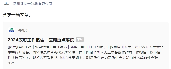 分享一篇文章——2024政府工作报告,医药重点解读
