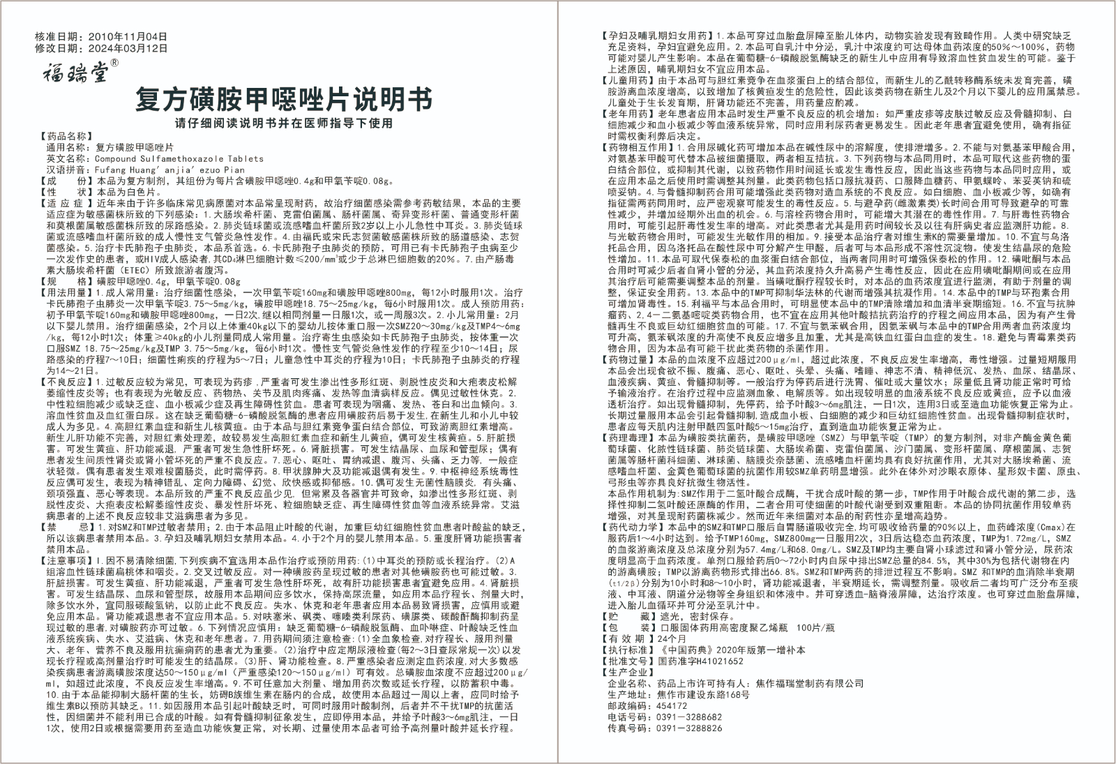功能主治:近年来由于许多临床常见病原菌对本品常呈现耐药,故治疗细菌感染需参考药敏结果,本品的主要适应症为敏感菌株所致的下列感染: 1.大肠埃希杆菌、克雷伯菌属、肠杆菌属、奇异变形杆菌、普通变形杆菌和莫根菌属敏感菌株所致的尿路感染。 2.肺炎链球菌或流感嗜血杆菌所致2岁以上小儿急性中耳炎。 3.肺炎链球菌或流感嗜血杆菌所致的成人慢性支气管炎急性发作。 4.由福氏或宋氏志贺菌敏感菌株所致的肠道感染、志贺菌感染。 5.治疗卡氏肺孢子虫肺炎,本品系首选。 6.卡氏肺孢子虫肺炎的预防,可用已有卡氏肺孢子虫病至少一次发作史的患