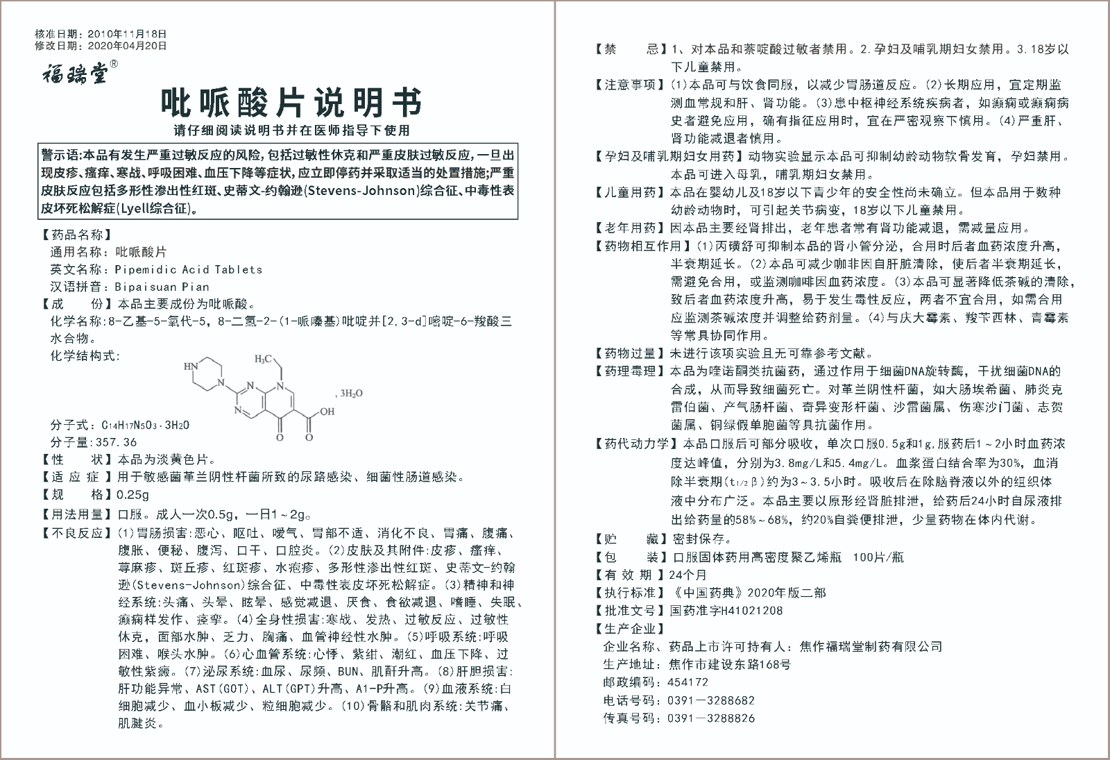 功能主治:用于敏感菌革兰阴性杆菌所致的尿路感染、细菌性肠道感染。