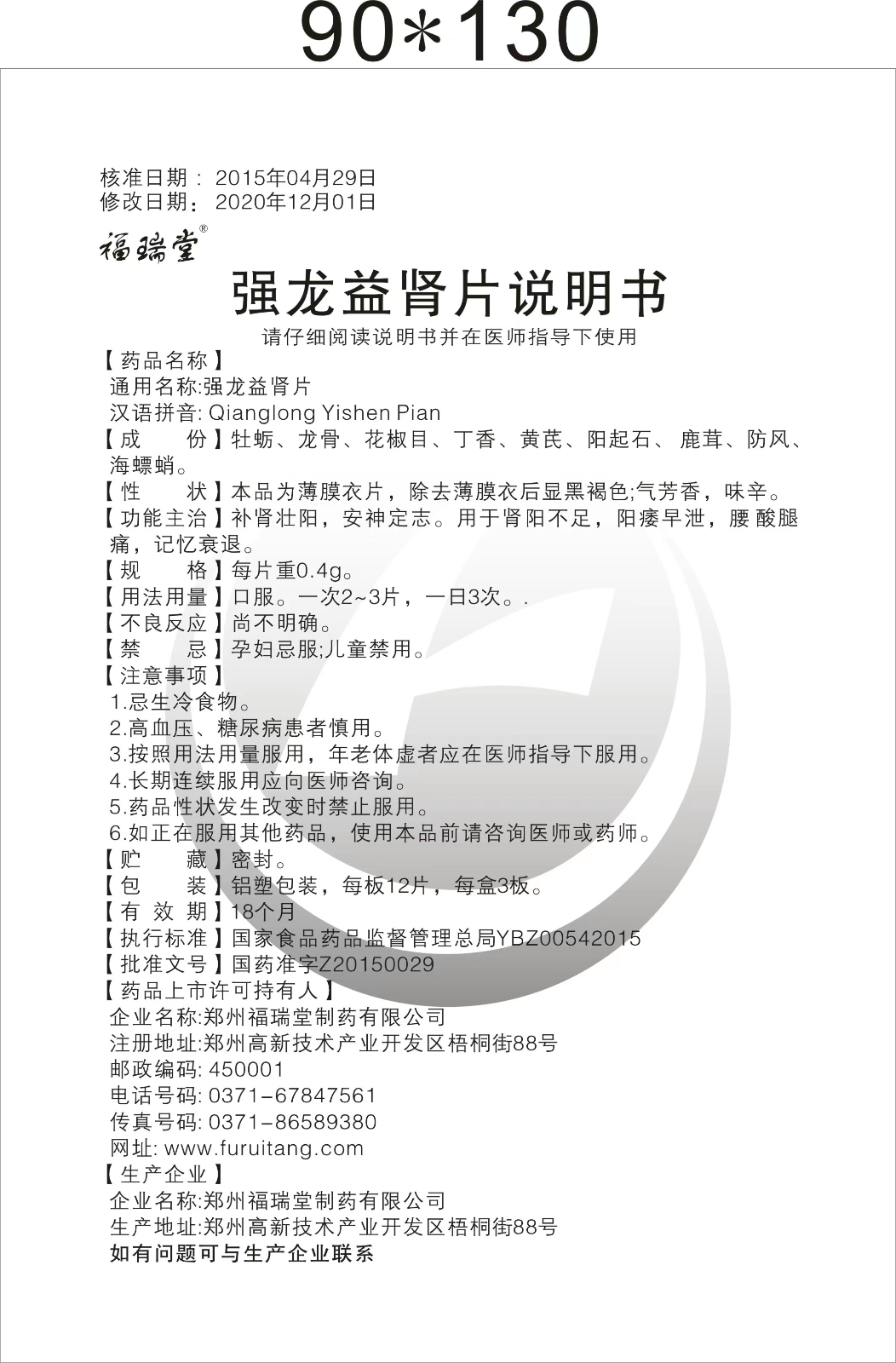 通用名称:强龙益肾片