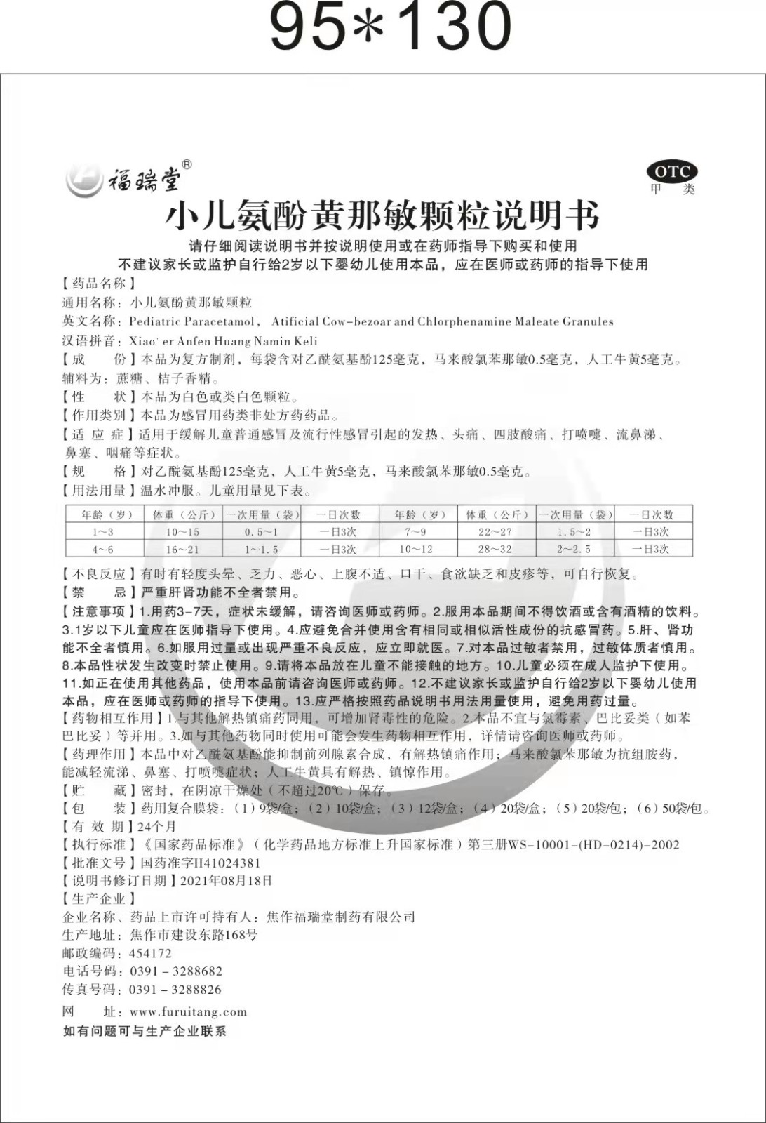规格:对乙酰氨基酚125毫克,人工牛黄5毫克,马来酸氯苯那敏0.5毫克