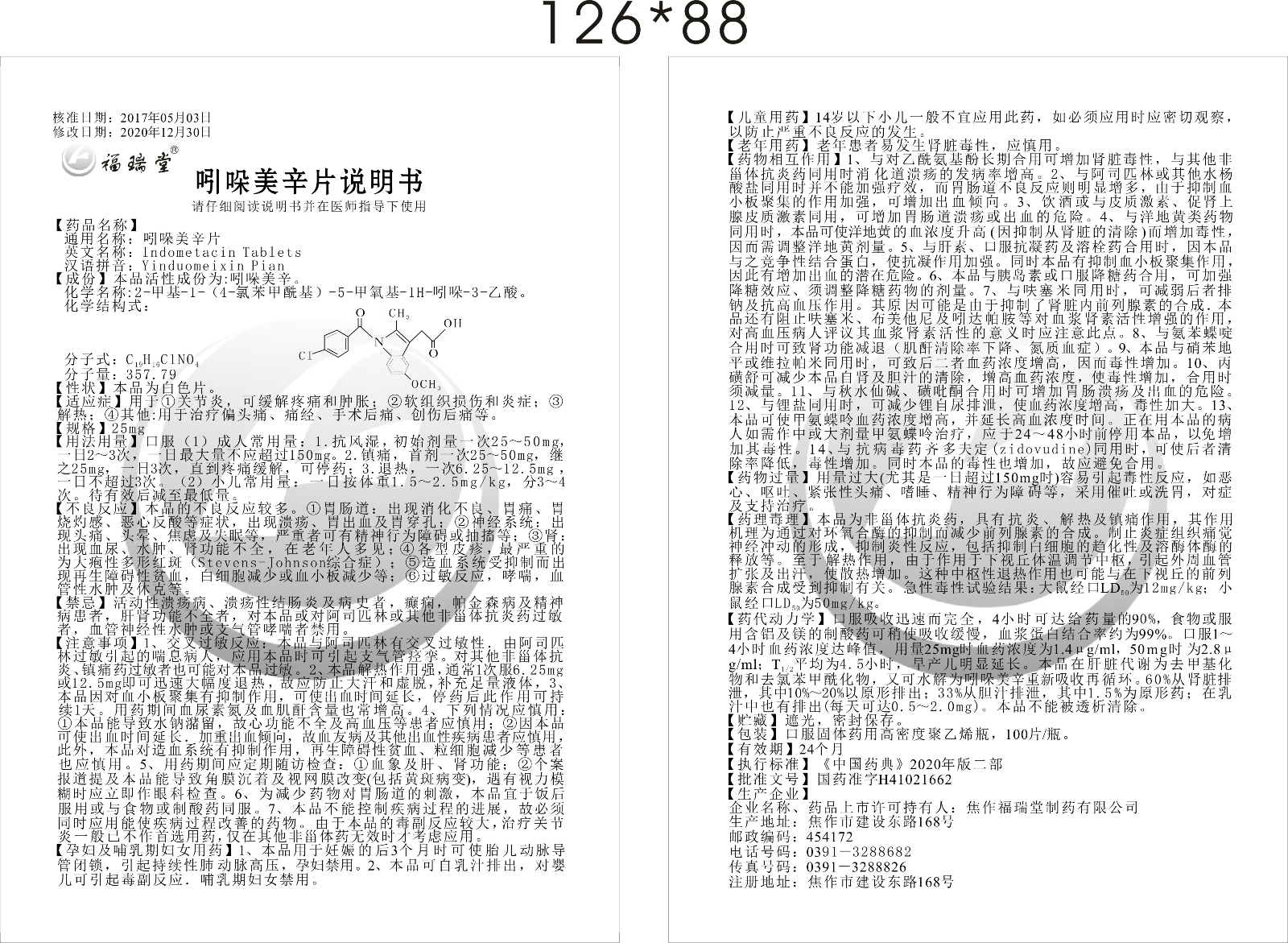 通用名称:吲哚美辛片