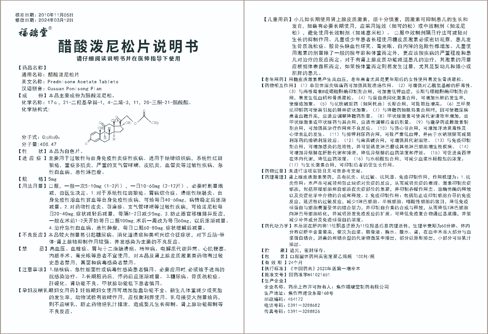醋酸泼尼松片(100片)说明书