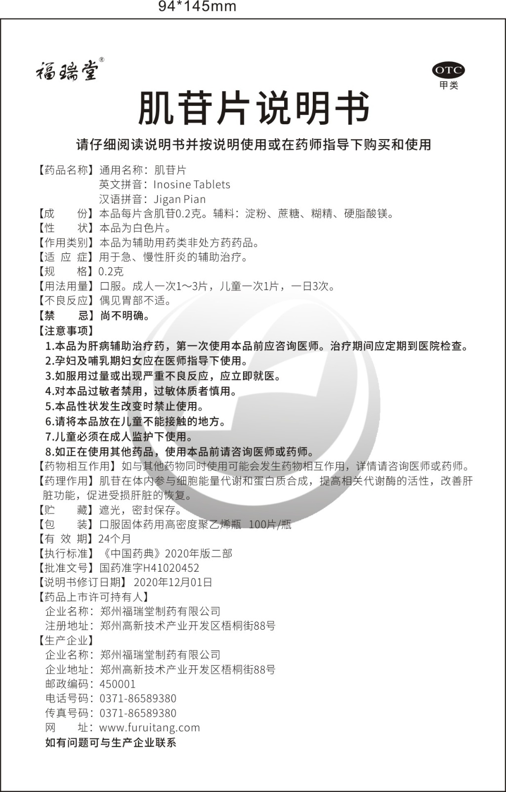 英文名称:Inosine Tablets