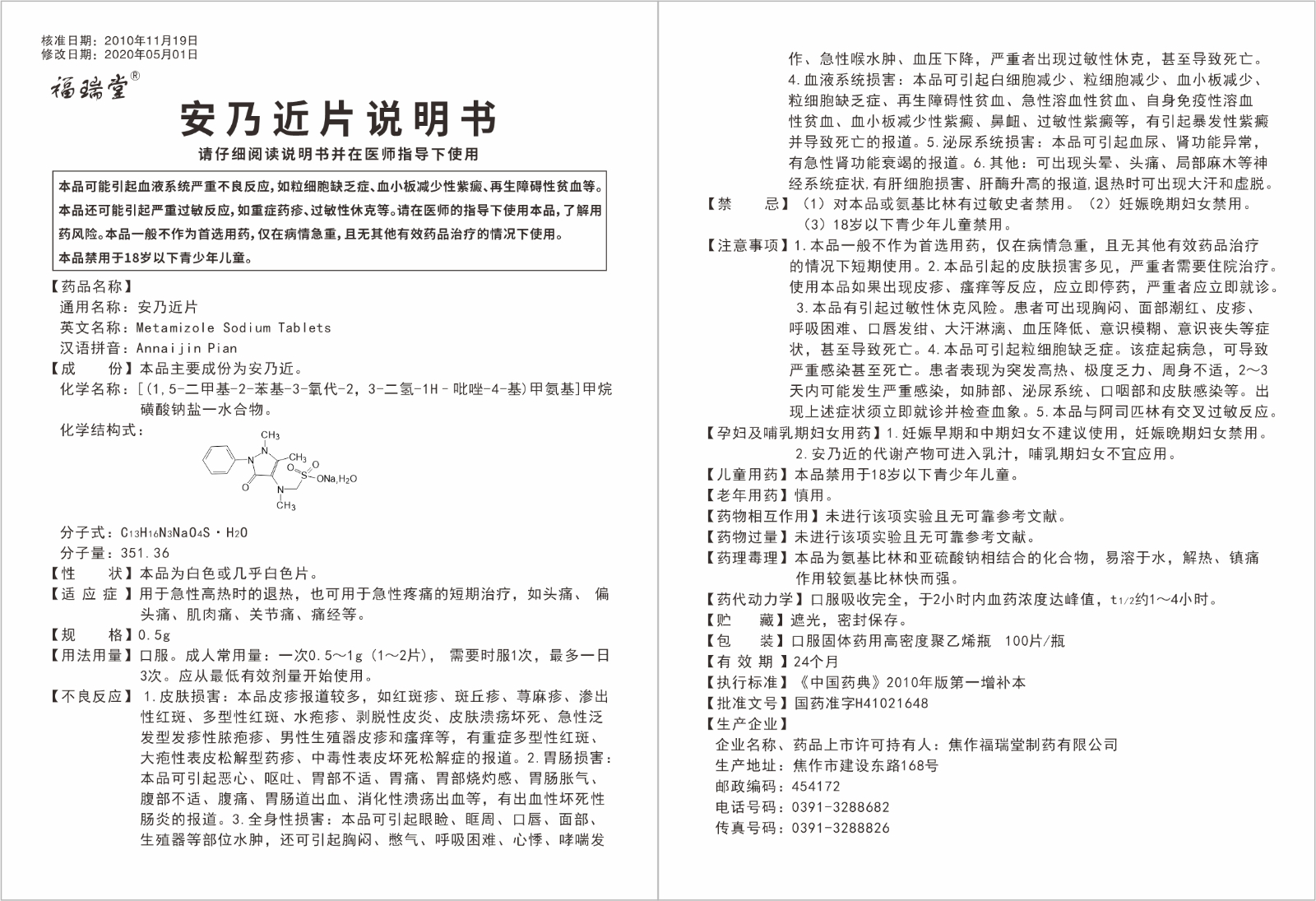 通用名称:安乃近片