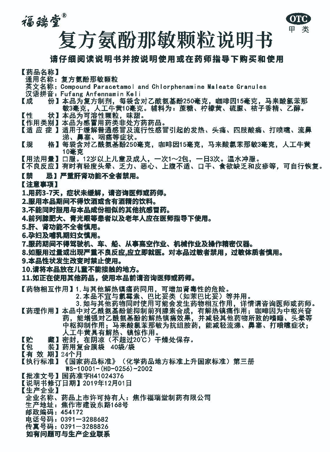 规格:每袋含对乙酰氨基酚250毫克,咖啡因15毫克,马来酸氯苯那敏3毫克,人工牛黄10毫克