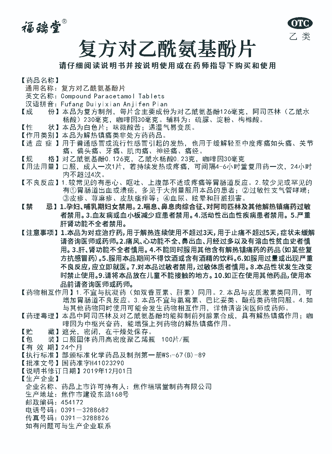 复方对乙酰氨基酚片(100片)说明书