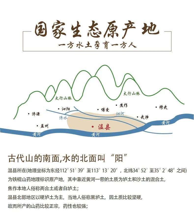一选区域,只选北纬35度、东经113度为中心,30公里范围内种植的山药,此地属温县独有的特殊地理环境,山药品质最好。