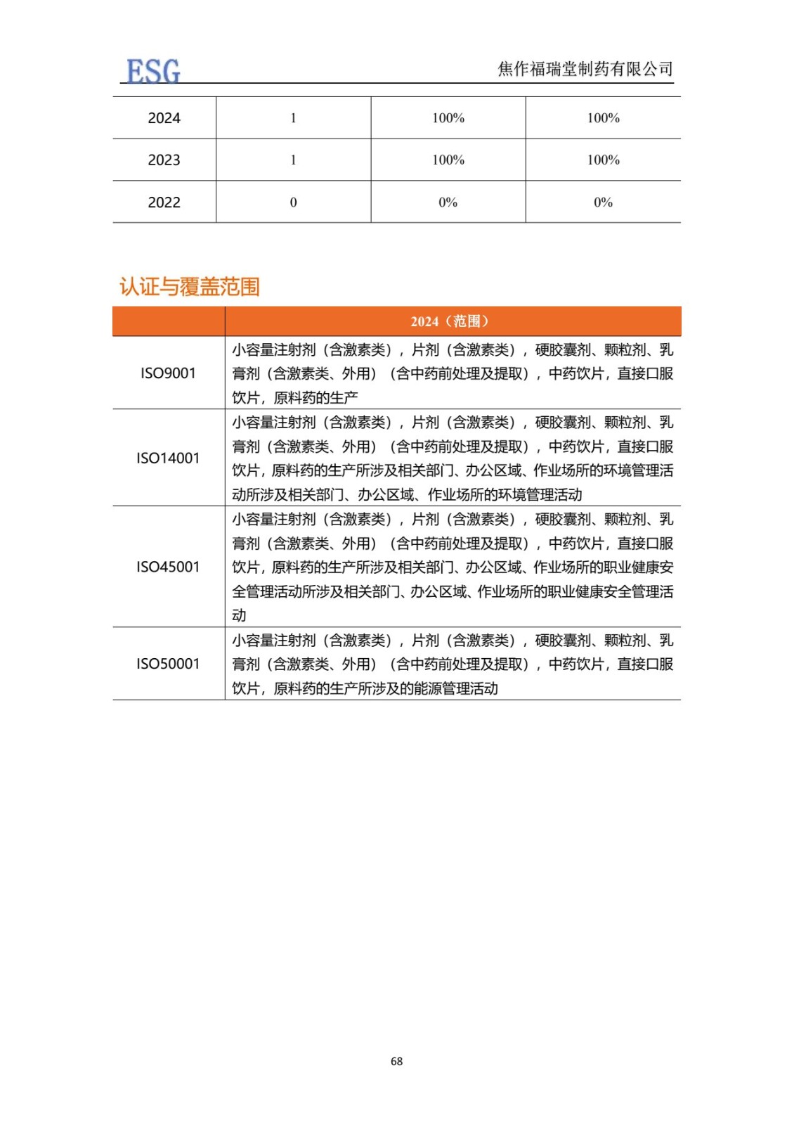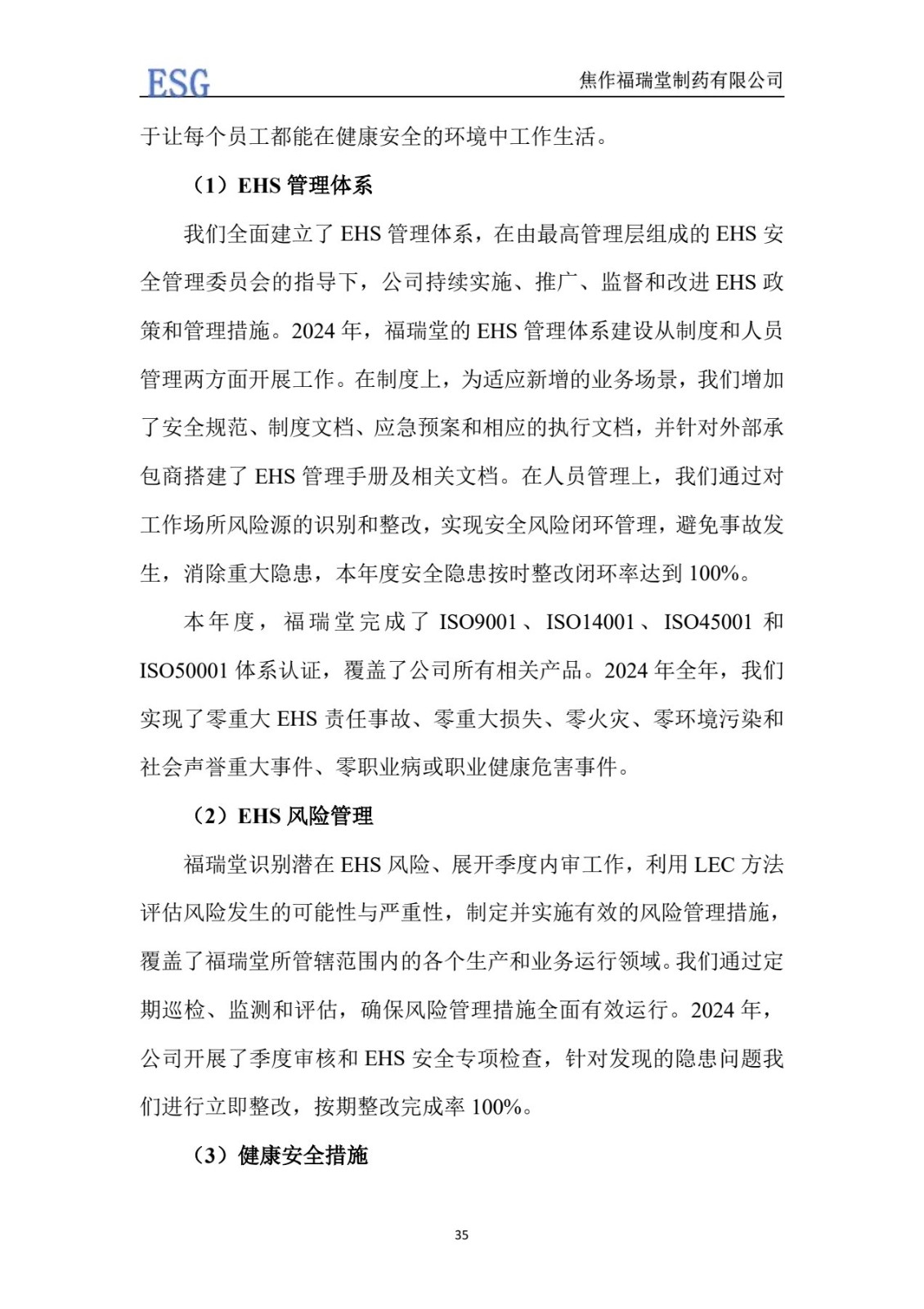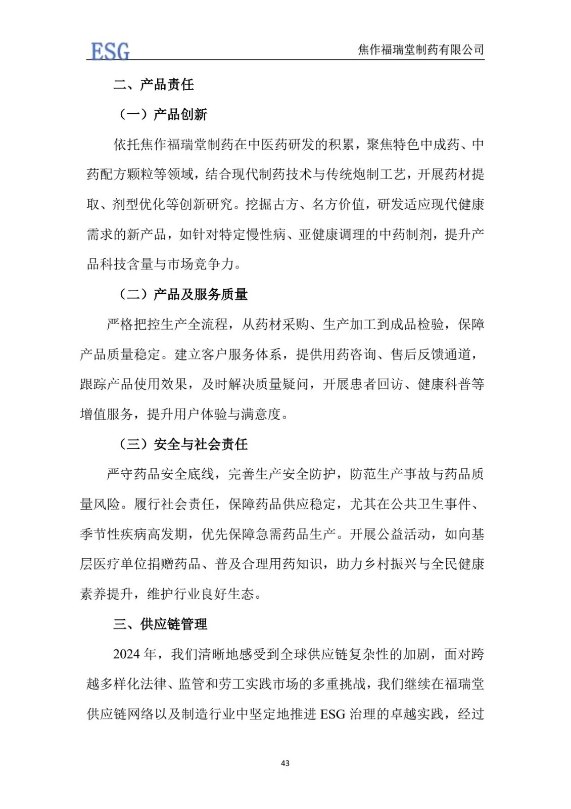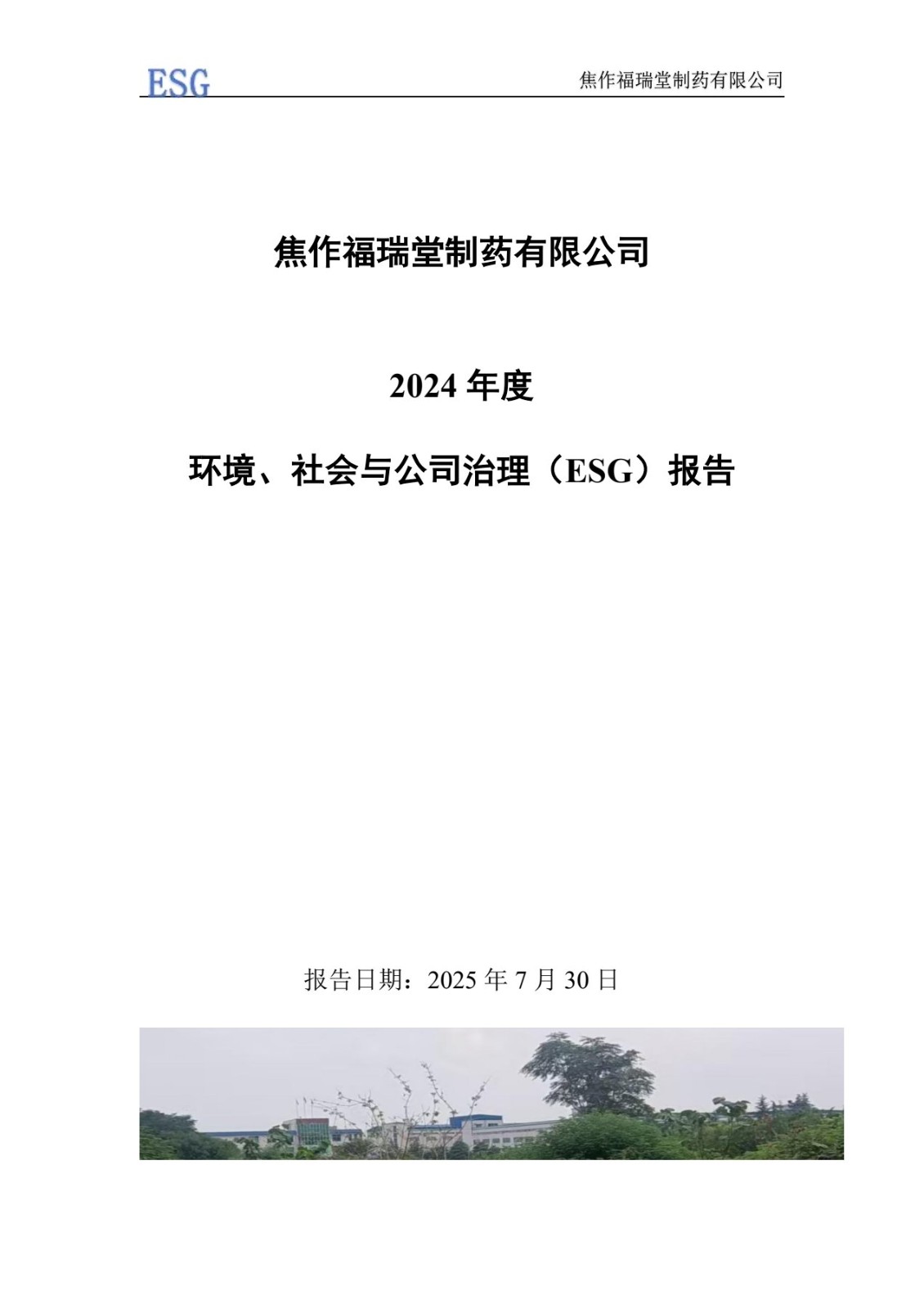焦作福瑞堂制药2024年环境、社会及管 治报告(ESG)