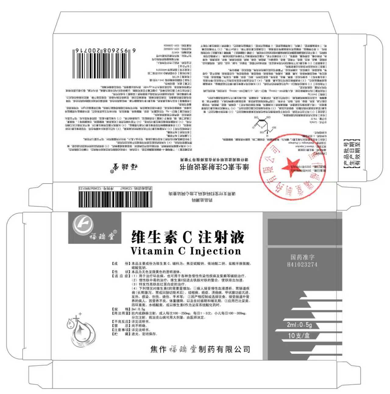2.维生素C注射液(批准文号:国药准字H41023274,规格:2ml:0.5g)