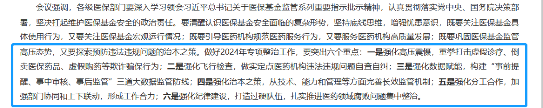 进入2024年,从医保基金监管在医保局系列工作会议中被高频点名的信号来看,2024年无疑将是医保基金监管的大年。