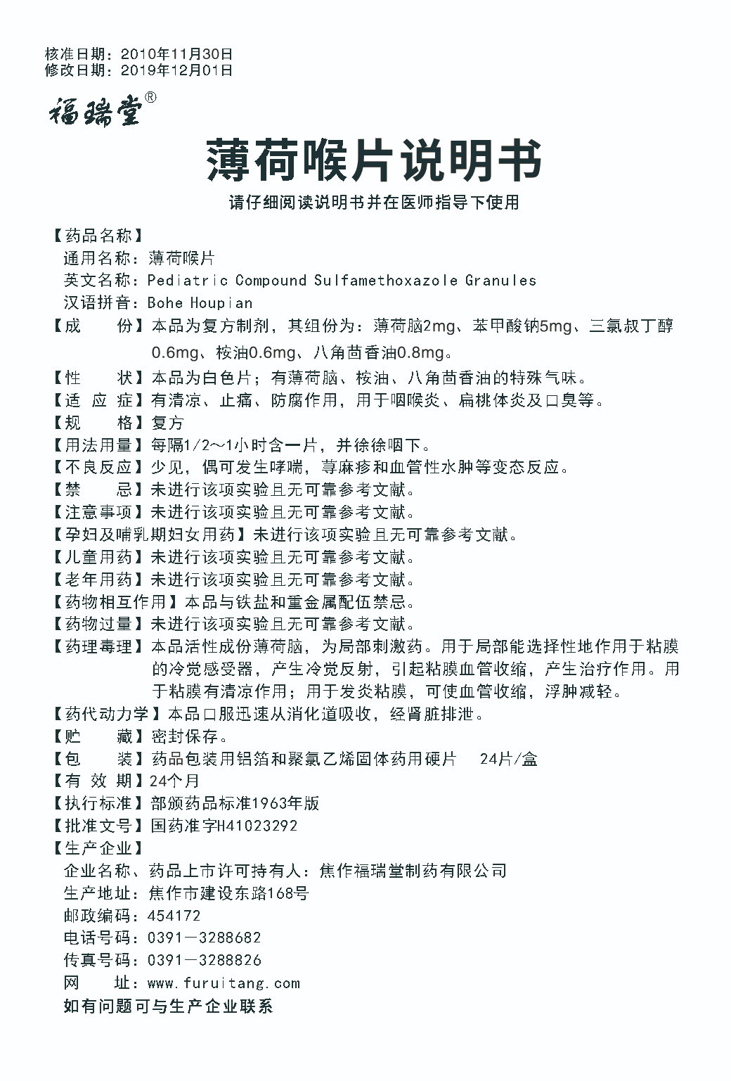 薄荷喉片说明书