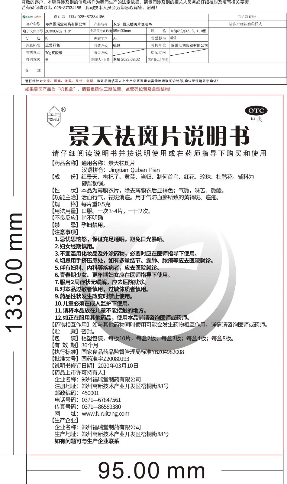 景天祛斑片说明书