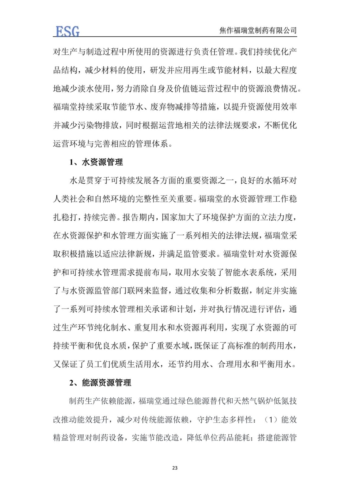 焦作福瑞堂制药2024年环境、社会及管 治报告(ESG)