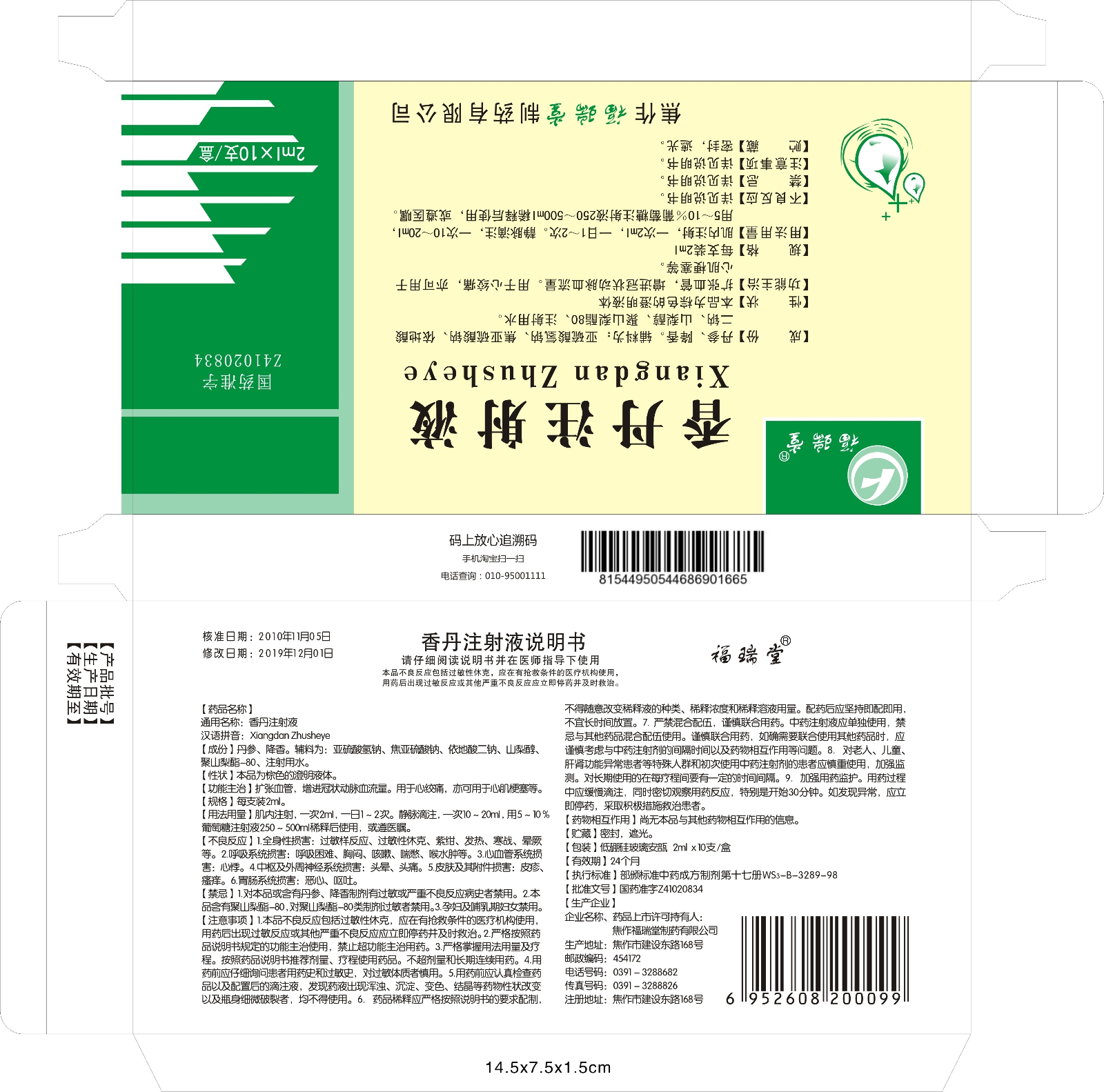 香丹注射液2ml说明书